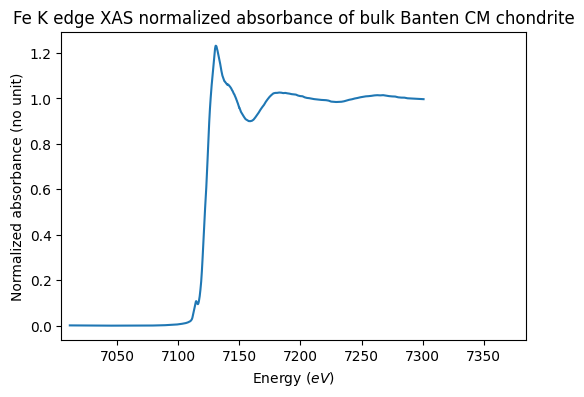 Fe K edge XAS normalized absorbance of bulk Banten CM chondrite