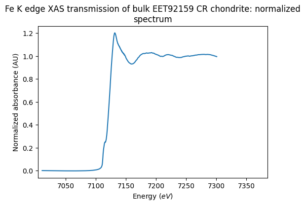 Fe K edge XAS transmission of bulk EET92159 CR chondrite: normalized spectrum