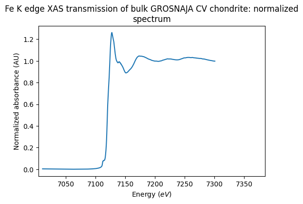 Fe K edge XAS transmission of bulk GROSNAJA CV chondrite: normalized spectrum