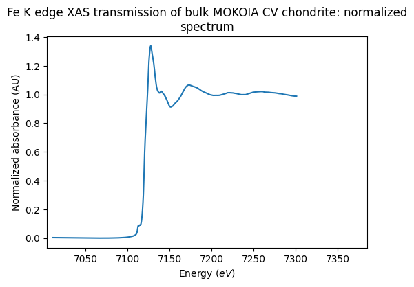 Fe K edge XAS transmission of bulk MOKOIA CV chondrite: normalized spectrum