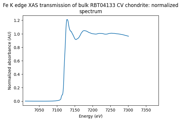 Fe K edge XAS transmission of bulk RBT04133 CV chondrite: normalized spectrum