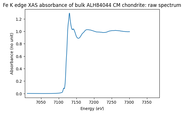Fe K edge XAS absorbance of bulk ALH84044 CM chondrite: raw spectrum