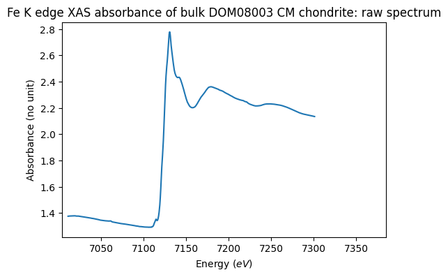 Fe K edge XAS absorbance of bulk CM carbonaceous chondrites
