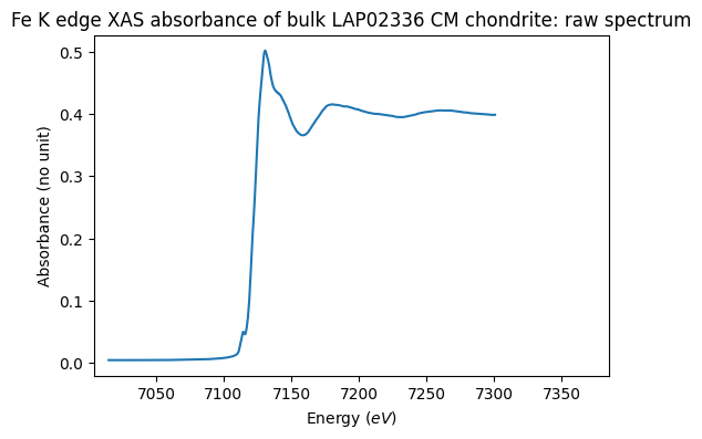 Fe K edge XAS absorbance of bulk LAP02336 CM chondrite: raw spectrum