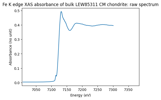 Fe K edge XAS absorbance of bulk CM carbonaceous chondrites