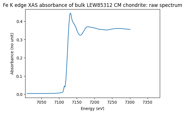 Fe K edge XAS absorbance of bulk CM carbonaceous chondrites