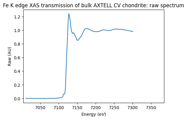 - Garenne, Alexandre; Bonal, Lydie; Beck, Pierre; Proux, Olivier (2013): Fe K edge XAS transmission of bulk CV carbonaceous chondrites. SSHADE/GhoSST+FAME (OSUG Data Center). Dataset/Spectral Data. https://doi.org/10.26302/SSHADE/EXPERIMENT_LB_20191211_005