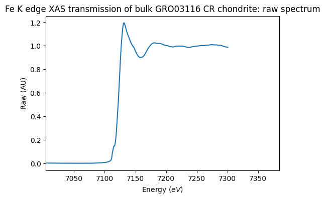 - Garenne, Alexandre; Bonal, Lydie; Beck, Pierre; Proux, Olivier (2013): Fe K edge XAS transmission of bulk CR carbonaceous chondrites. SSHADE/GhoSST+FAME (OSUG Data Center). Dataset/Spectral Data. https://doi.org/10.26302/SSHADE/EXPERIMENT_LB_20191211_003