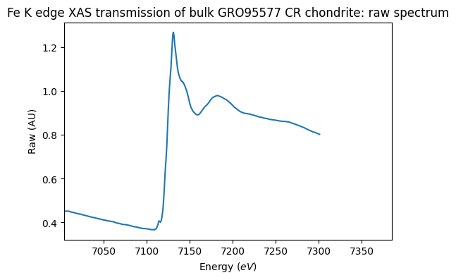 Fe K edge XAS transmission of bulk GRO95577 CR chondrite: raw spectrum