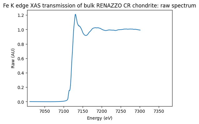 Fe K edge XAS transmission of bulk RENAZZO CR chondrite: raw spectrum