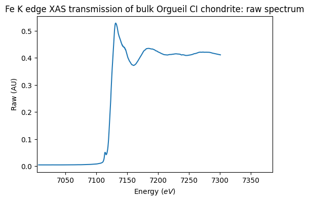 - Garenne, Alexandre; Bonal, Lydie; Beck, Pierre; Proux, Olivier (2013): Fe K edge XAS transmission of bulk CI carbonaceous chondrites. SSHADE/GhoSST+FAME (OSUG Data Center). Dataset/Spectral Data. https://doi.org/10.26302/SSHADE/EXPERIMENT_LB_20191211_004
