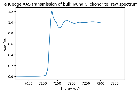 - Garenne, Alexandre; Bonal, Lydie; Beck, Pierre; Proux, Olivier (2013): Fe K edge XAS transmission of bulk CI carbonaceous chondrites. SSHADE/GhoSST+FAME (OSUG Data Center). Dataset/Spectral Data. https://doi.org/10.26302/SSHADE/EXPERIMENT_LB_20191211_004