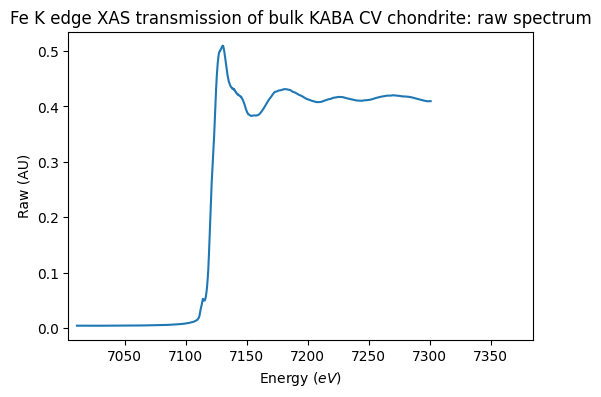 Fe K edge XAS transmission of bulk KABA CV chondrite: raw spectrum