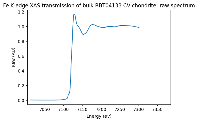 - Garenne, Alexandre; Bonal, Lydie; Beck, Pierre; Proux, Olivier (2013): Fe K edge XAS transmission of bulk CV carbonaceous chondrites. SSHADE/GhoSST+FAME (OSUG Data Center). Dataset/Spectral Data. https://doi.org/10.26302/SSHADE/EXPERIMENT_LB_20191211_005