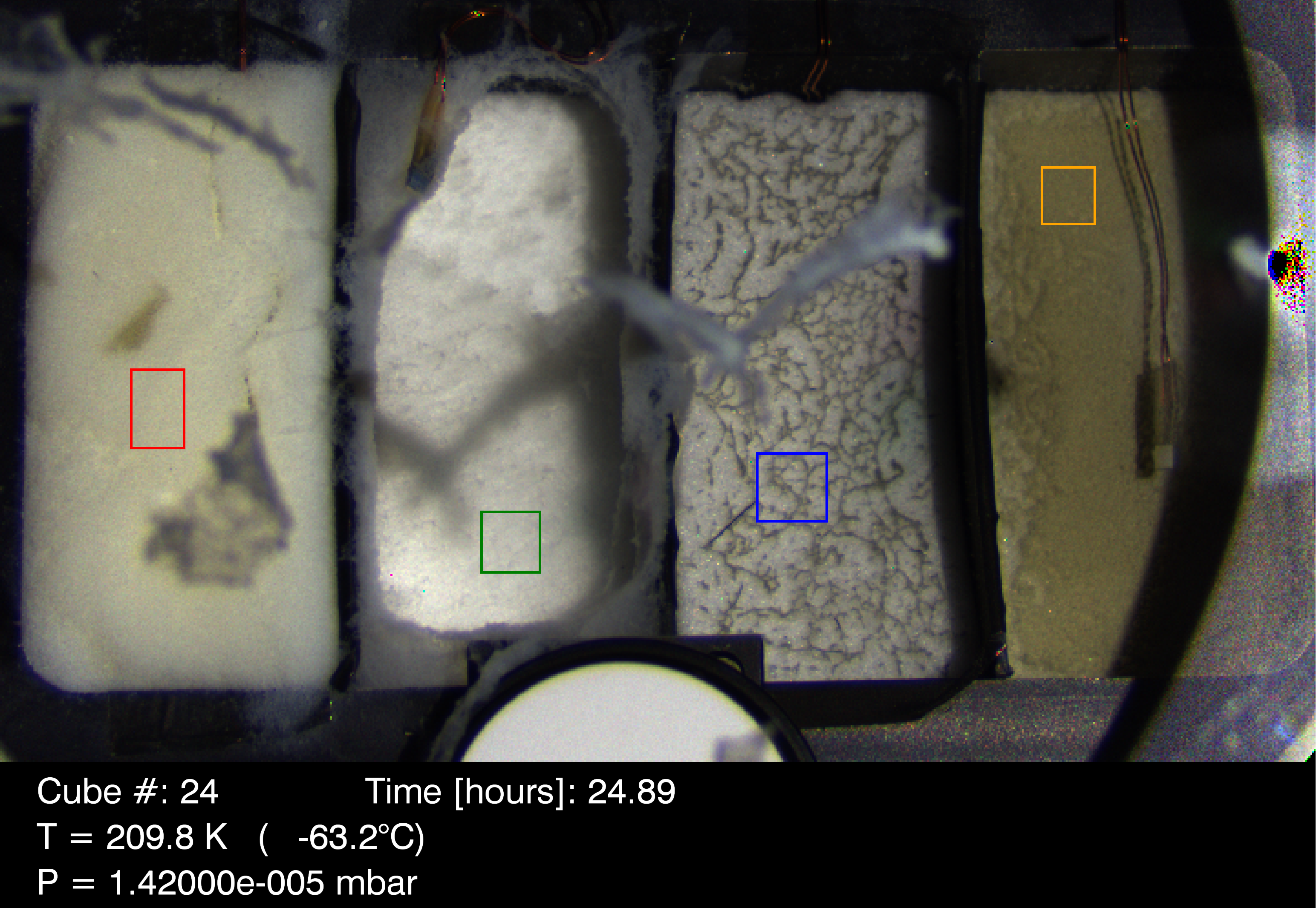 - After 24.89h of sublimation, a desiccated layer made of pure smectite, about 6.72±0.50 mm thick, covers the ice particles.