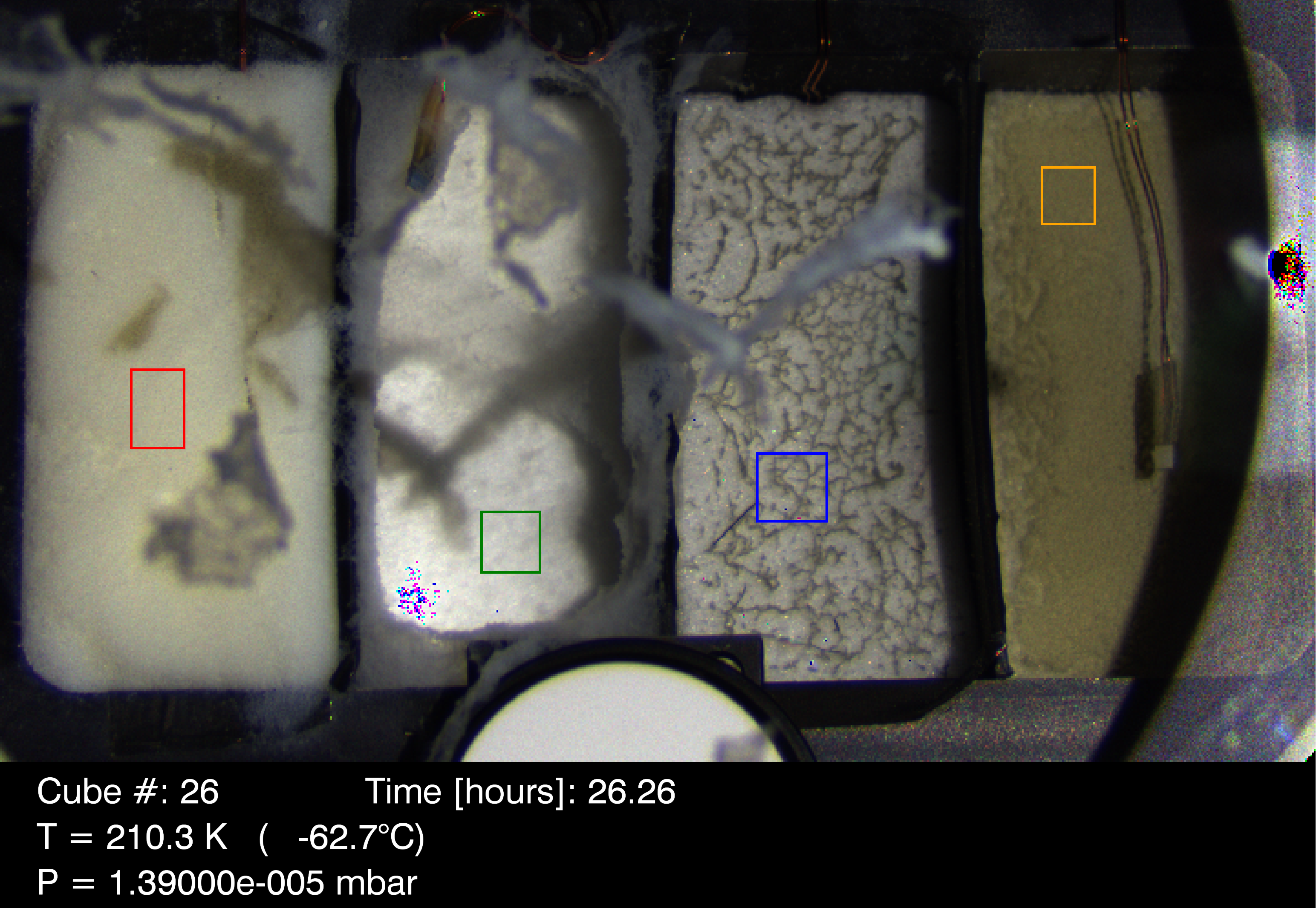 - After 26.26h of sublimation, a desiccated layer made of pure smectite, about 7.09±0.53 mm thick, covers the ice particles.