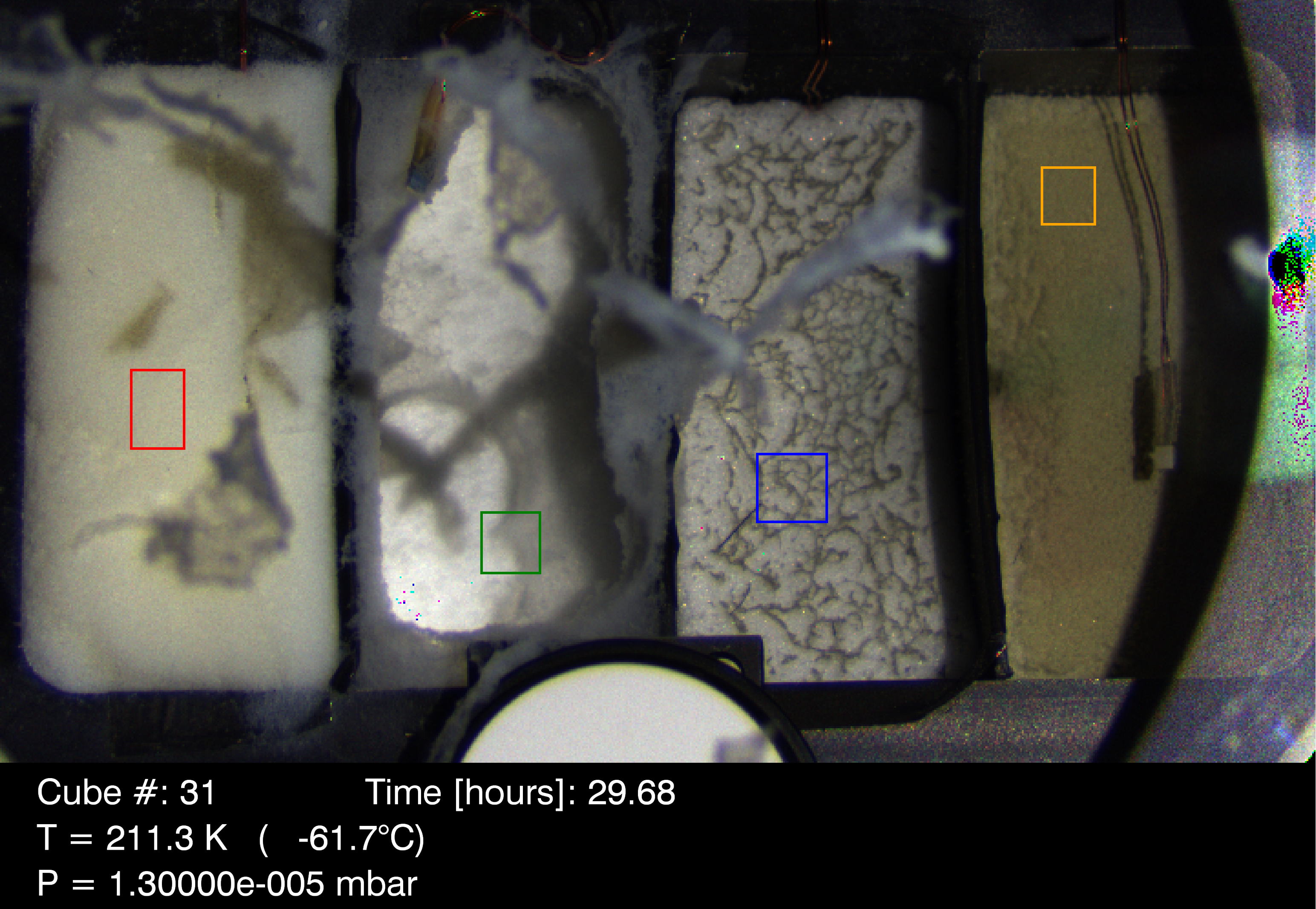 - After 29.68h of sublimation, a desiccated layer made of pure smectite, about 8.01±0.59 mm thick, covers the ice particles.