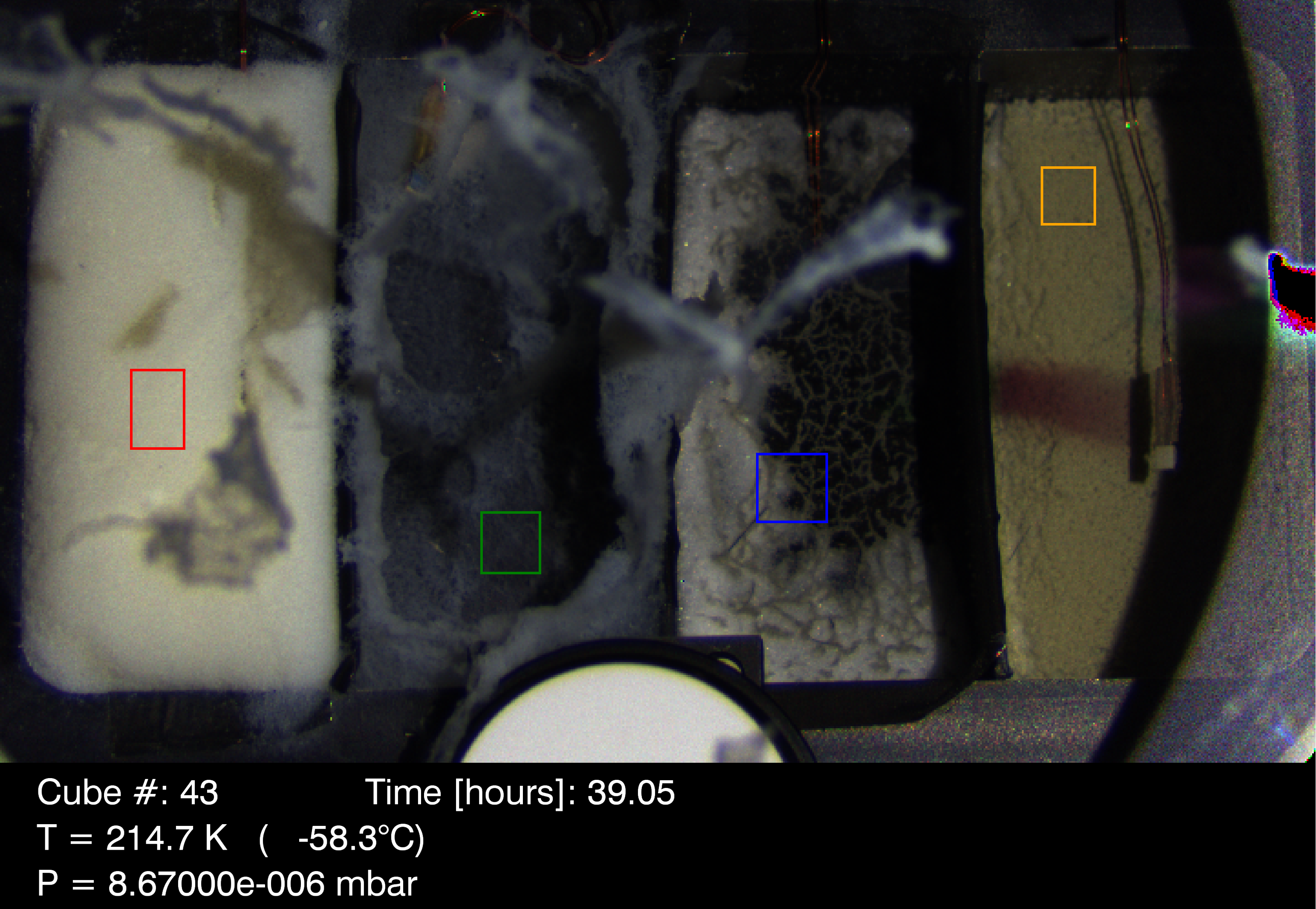 - After 39.05h of sublimation, a desiccated layer made of pure smectite, about 10.54±0.78 mm thick, covers the ice particles.