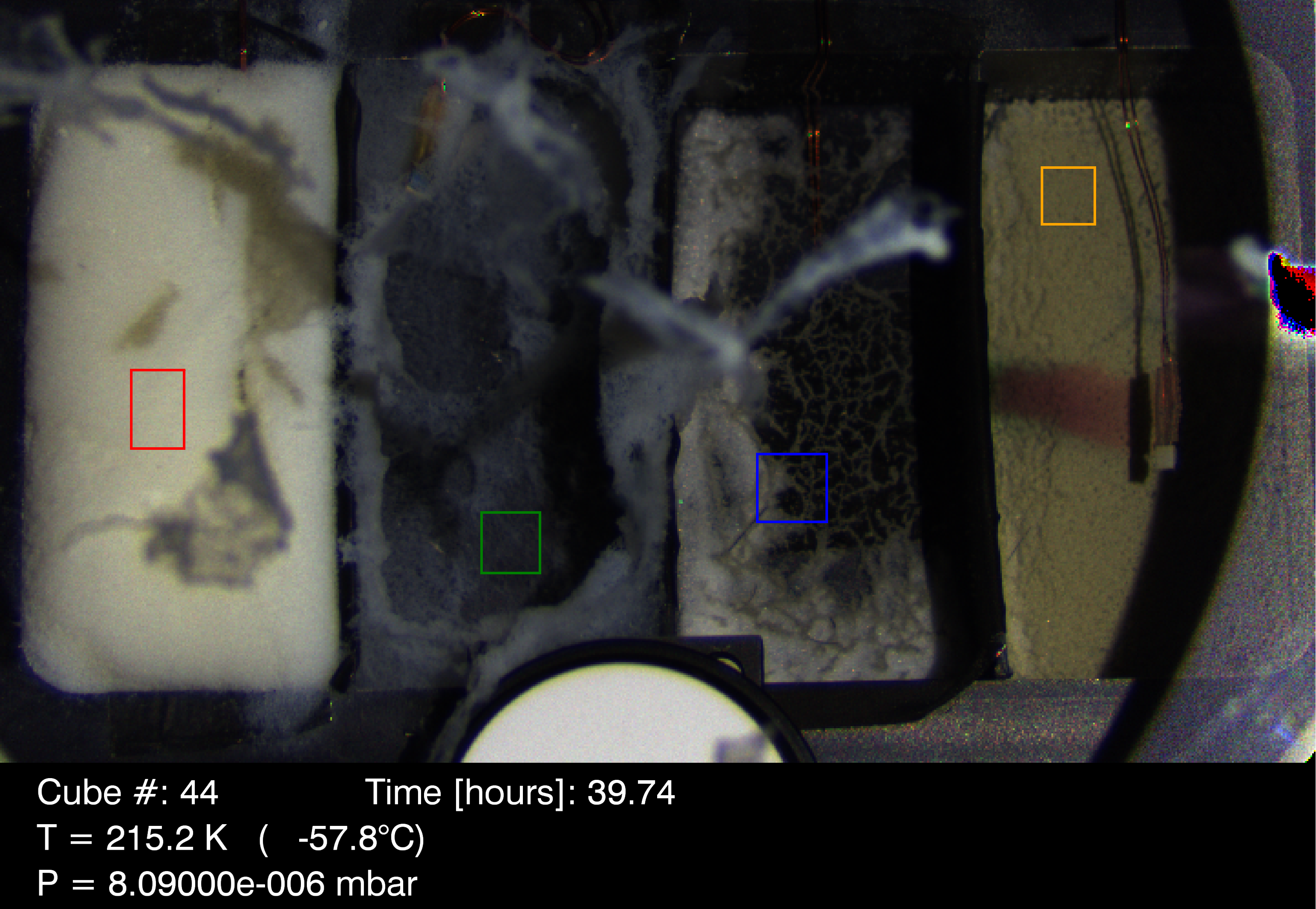 - After 39.74h of sublimation, a desiccated layer made of pure smectite, about 10.73±0.79 mm thick, covers the ice particles.
