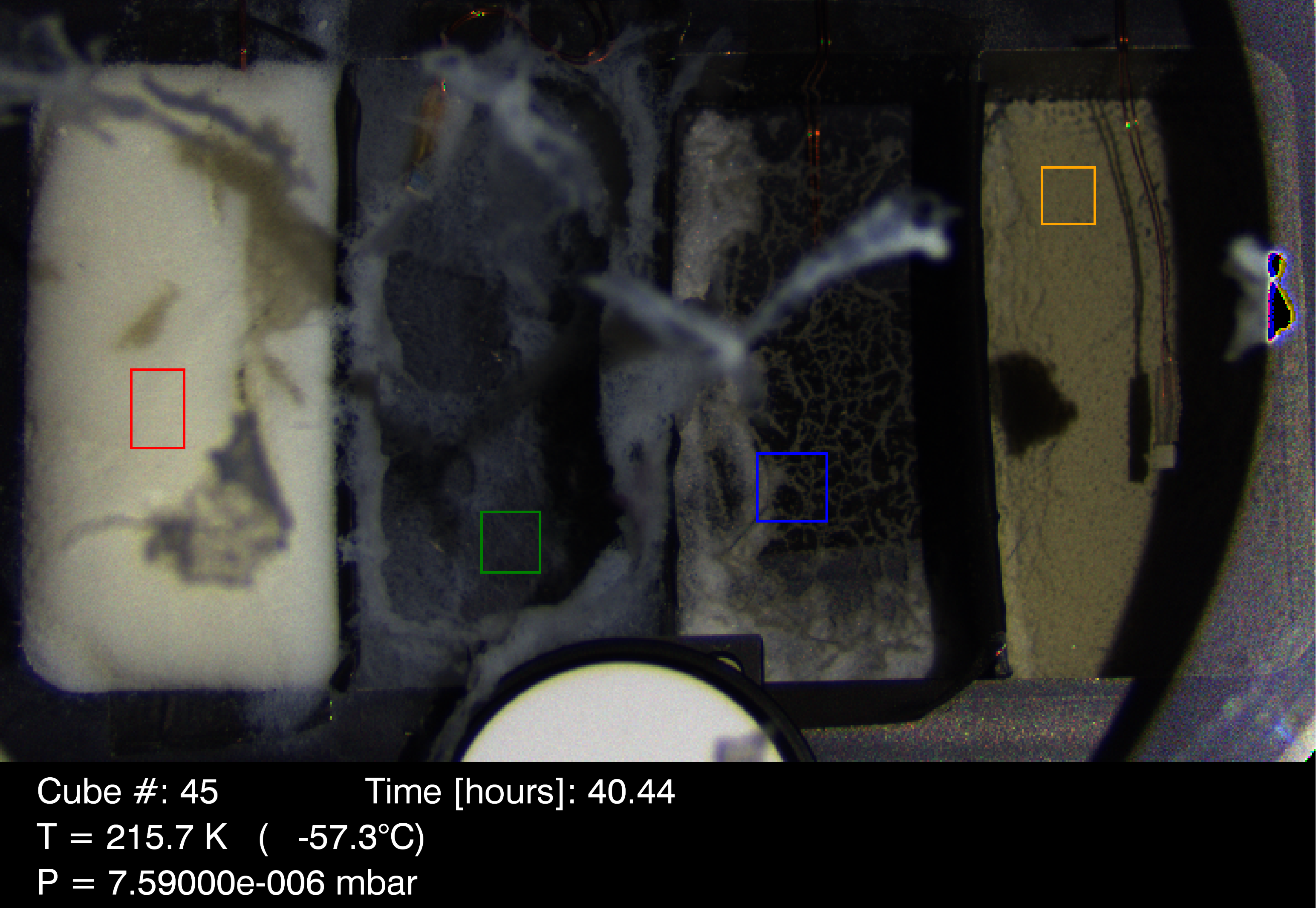 - After 40.44h of sublimation, a desiccated layer made of pure smectite, about 10.92±0.81 mm thick, covers the ice particles.