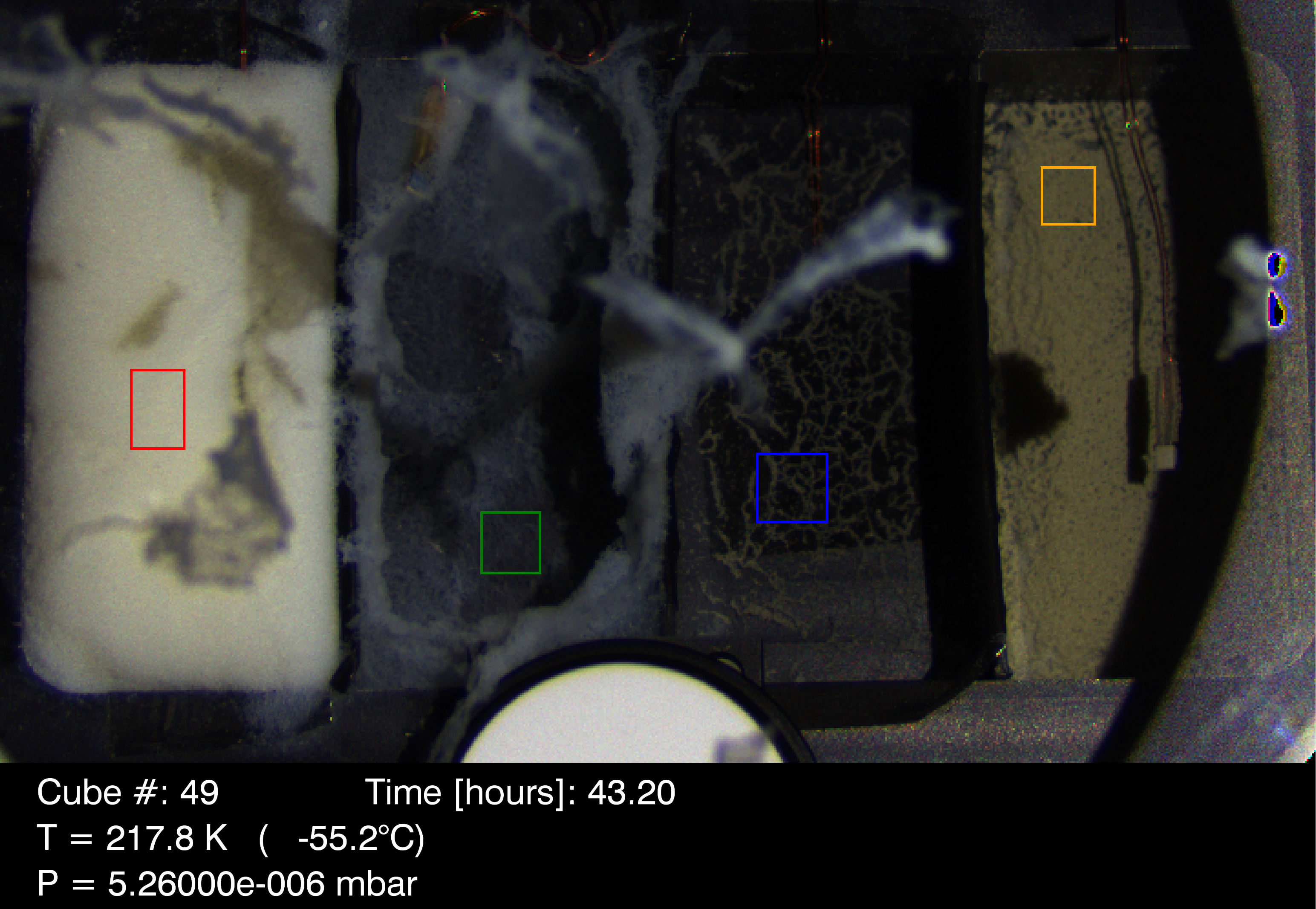 - After 43.2h of sublimation, a desiccated layer made of pure smectite, about 11.66±0.86 mm thick, covers the ice particles.