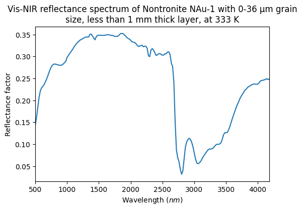 - Schroeder, Stefan; Poch, Olivier; Ferrari, Marco; DeAngelis, Simone (2019): Vis-NIR reflectance spectra of Nontronite NAu-1, pure, mixed with Water ice, during and after ice sublimation. SSHADE/CSS (OSUG Data Center). Dataset/Spectral Data. https://doi.org/10.26302/SSHADE/EXPERIMENT_OP_20200701_001