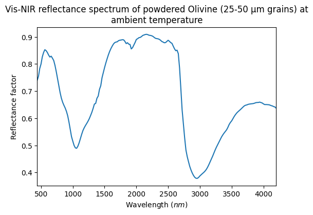 - Sultana, Robin (2018): Vis-NIR reflectance spectra of powdered olivine, pyroxene, smectite and silica at 4 different grain sizes (from sub-µm to 200 µm) and with sub-µm grains in compact or porous surfaces. SSHADE/GhoSST (OSUG Data Center). Dataset/Spectral Data. https://doi.org/10.26302/SSHADE/EXPERIMENT_OP_20200908_001