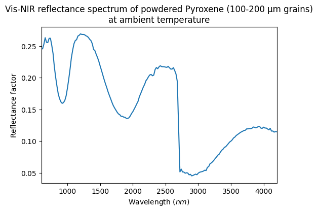 - Sultana, Robin (2018): Vis-NIR reflectance spectra of powdered olivine, pyroxene, smectite and silica at 4 different grain sizes (from sub-µm to 200 µm) and with sub-µm grains in compact or porous surfaces. SSHADE/GhoSST (OSUG Data Center). Dataset/Spectral Data. https://doi.org/10.26302/SSHADE/EXPERIMENT_OP_20200908_001