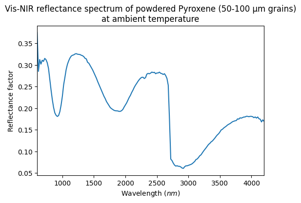 - Sultana, Robin (2018): Vis-NIR reflectance spectra of powdered olivine, pyroxene, smectite and silica at 4 different grain sizes (from sub-µm to 200 µm) and with sub-µm grains in compact or porous surfaces. SSHADE/GhoSST (OSUG Data Center). Dataset/Spectral Data. https://doi.org/10.26302/SSHADE/EXPERIMENT_OP_20200908_001