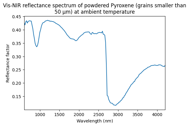 - Sultana, Robin (2018): Vis-NIR reflectance spectra of powdered olivine, pyroxene, smectite and silica at 4 different grain sizes (from sub-µm to 200 µm) and with sub-µm grains in compact or porous surfaces. SSHADE/GhoSST (OSUG Data Center). Dataset/Spectral Data. https://doi.org/10.26302/SSHADE/EXPERIMENT_OP_20200908_001