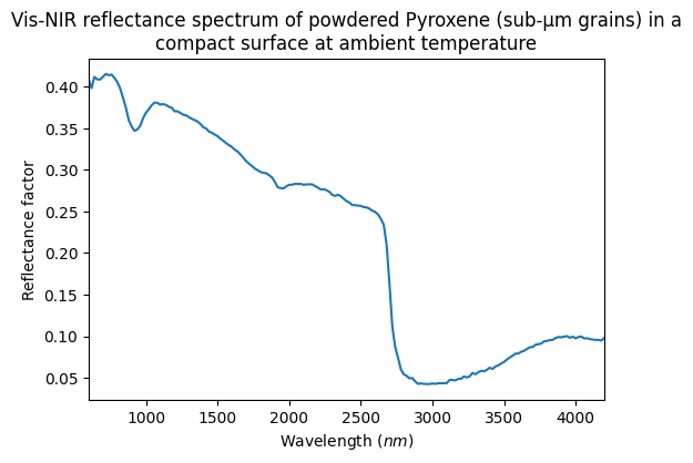 - Sultana, Robin (2018): Vis-NIR reflectance spectra of powdered olivine, pyroxene, smectite and silica at 4 different grain sizes (from sub-µm to 200 µm) and with sub-µm grains in compact or porous surfaces. SSHADE/GhoSST (OSUG Data Center). Dataset/Spectral Data. https://doi.org/10.26302/SSHADE/EXPERIMENT_OP_20200908_001