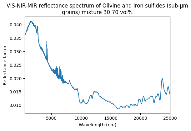 - Sultana, Robin (2019): VIS-NIR-MIR Reflectance spectra of mixtures of sub-µm grains of Olivine with Iron Sulfides or Anthracite, at different concentrations. SSHADE/GhoSST (OSUG Data Center). Dataset/Spectral Data. https://doi.org/10.26302/SSHADE/EXPERIMENT_OP_20230207_001