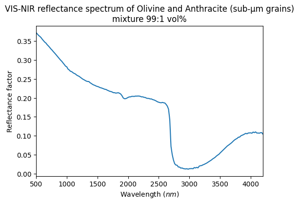 - Mixture of Olivine and Anthracite powders (sub-micrometre-sized grains), Olivine:Anthracite 99:1 vol%
