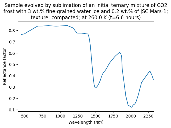- Yoldi, Zuriñe (2018): VIS-NIR reflectance spectra collected during a sublimation experiment with ternary mixtures of CO2 frost, spherical water ice particles and JSC Mars-1 regolith simulant. SSHADE/BYPASS (OSUG Data Center). Dataset/Spectral Data. https://doi.org/10.26302/SSHADE/EXPERIMENT_ZY_20180207_000