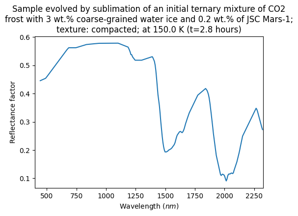 - Yoldi, Zuriñe (2018): VIS-NIR reflectance spectra collected during a sublimation experiment with ternary mixtures of CO2 frost, spherical water ice particles and JSC Mars-1 regolith simulant. SSHADE/BYPASS (OSUG Data Center). Dataset/Spectral Data. https://doi.org/10.26302/SSHADE/EXPERIMENT_ZY_20180207_000