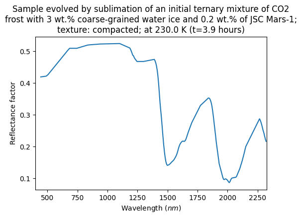 - Yoldi, Zuriñe (2018): VIS-NIR reflectance spectra collected during a sublimation experiment with ternary mixtures of CO2 frost, spherical water ice particles and JSC Mars-1 regolith simulant. SSHADE/BYPASS (OSUG Data Center). Dataset/Spectral Data. https://doi.org/10.26302/SSHADE/EXPERIMENT_ZY_20180207_000
