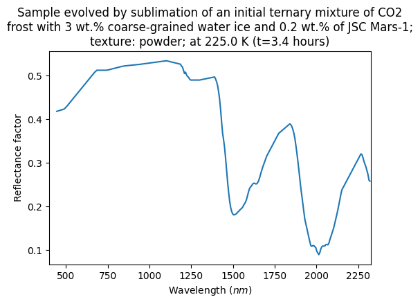 - Sample evolved by sublimation of an initial ternary mixture of CO2 frost with 3 wt.% coarse-grained water ice and 0.2 wt.% of JSC Mars-1; texture: powder;