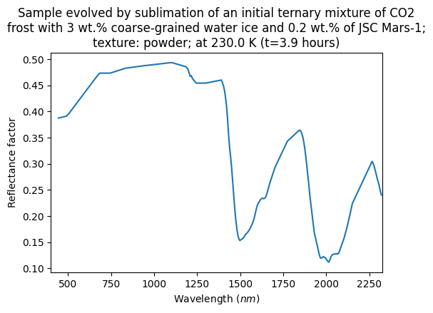 - Yoldi, Zuriñe (2018): VIS-NIR reflectance spectra collected during a sublimation experiment with ternary mixtures of CO2 frost, spherical water ice particles and JSC Mars-1 regolith simulant. SSHADE/BYPASS (OSUG Data Center). Dataset/Spectral Data. https://doi.org/10.26302/SSHADE/EXPERIMENT_ZY_20180207_000