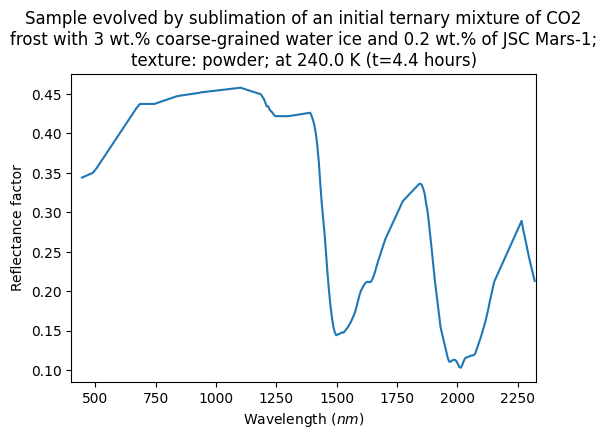 - Sample evolved by sublimation of an initial ternary mixture of CO2 frost with 3 wt.% coarse-grained water ice and 0.2 wt.% of JSC Mars-1; texture: powder;