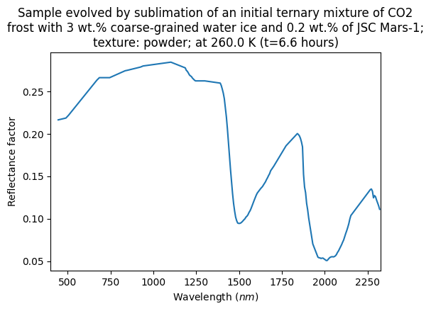 - Sample evolved by sublimation of an initial ternary mixture of CO2 frost with 3 wt.% coarse-grained water ice and 0.2 wt.% of JSC Mars-1; texture: powder;