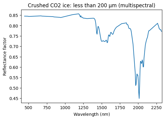 - Yoldi, Zuriñe (2018): VIS-NIR reflectance spectra of CO2 ice particles produced by crushing and sieving a compact slab of CO2 ice. SSHADE/BYPASS (OSUG Data Center). Dataset/Spectral Data. https://doi.org/10.26302/SSHADE/EXPERIMENT_ZY_20180212_000