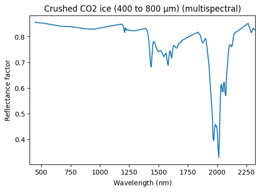 - Yoldi, Zuriñe (2018): VIS-NIR reflectance spectra of binary mixtures of coarse-grained crushed CO2 ice particles (400-800 µm) and spherical fine-grained water ice particles (4.5 µm average diameter). SSHADE/BYPASS (OSUG Data Center). Dataset/Spectral Data. https://doi.org/10.26302/SSHADE/EXPERIMENT_ZY_20180214_000