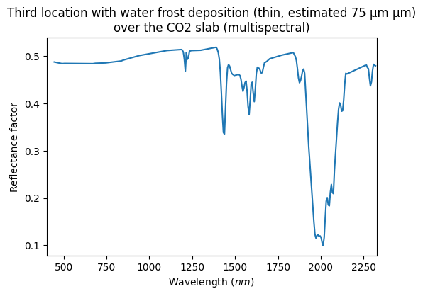 - Third location with water frost deposition (thin, estimated 75 µm microns) over the CO2 slab