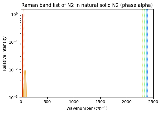 - Raman band list of N2 in natural solid N2 (phase alpha)