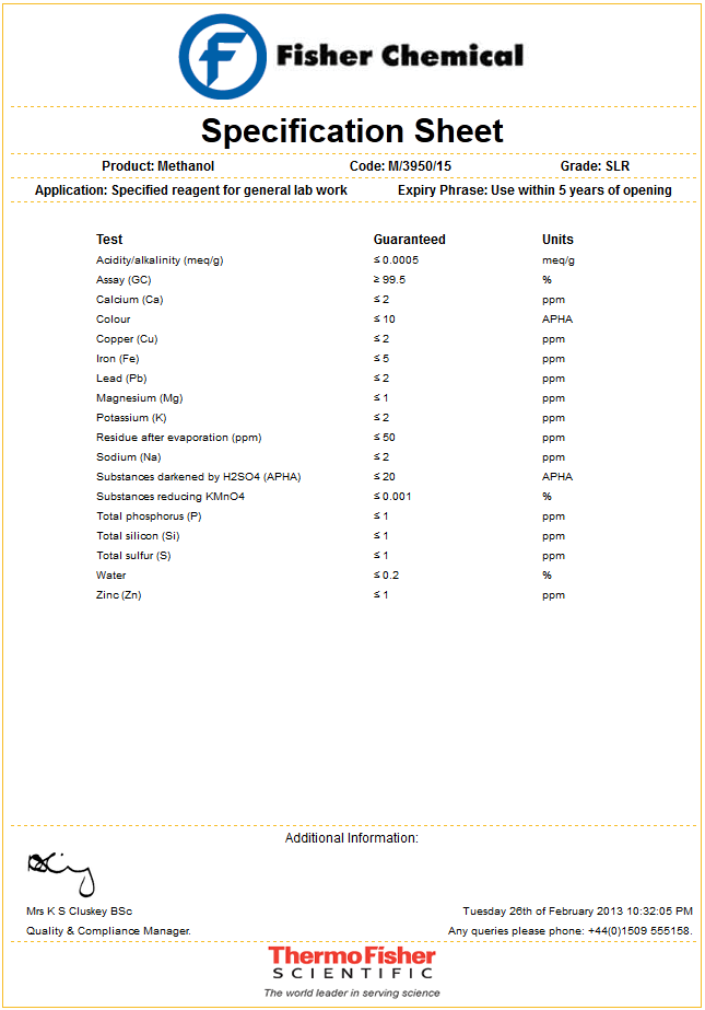 - CH3OH liquid 99.5+% - Fisher Scientific
