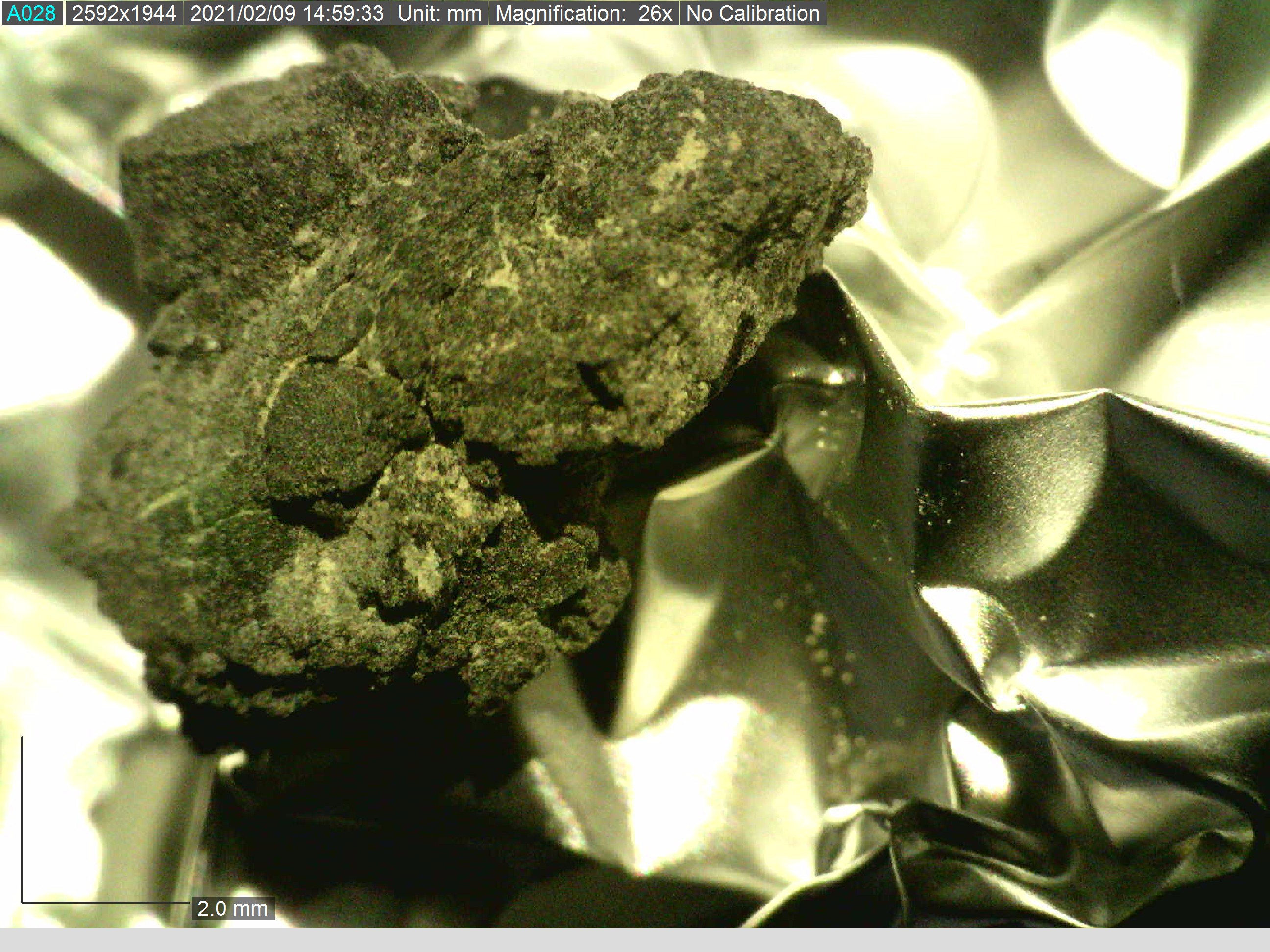 the raw piece of Orgueil was deposited on Aluminum foil to prevent any movement and in such a way that subsequent measurement was acquired on a relatively flat surface