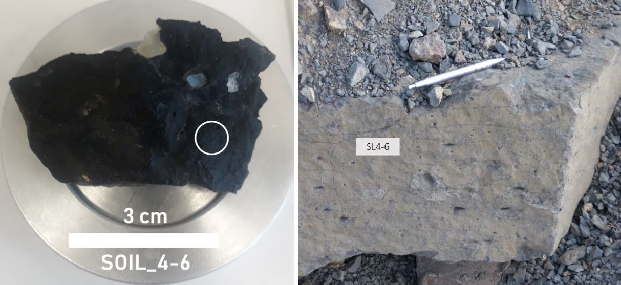 Altered basalt with vesicles (raw surface)