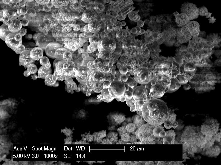 Water ice spherical particles 4.5±2.5 μm at about 120 K