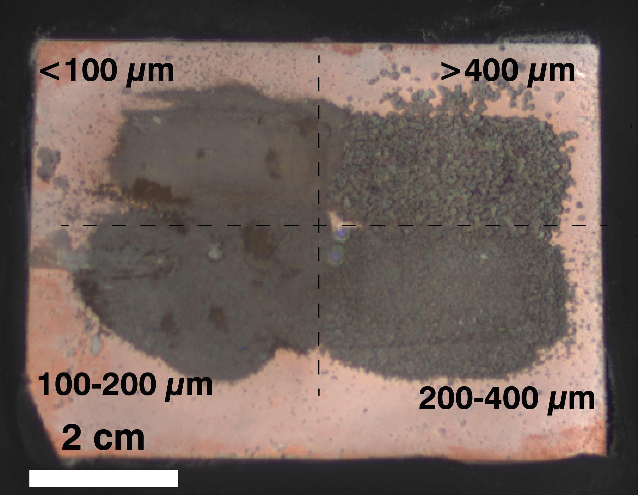 Water frost (~33 µm thick) on JSC Mars-1 (grains larger than 400 µm)