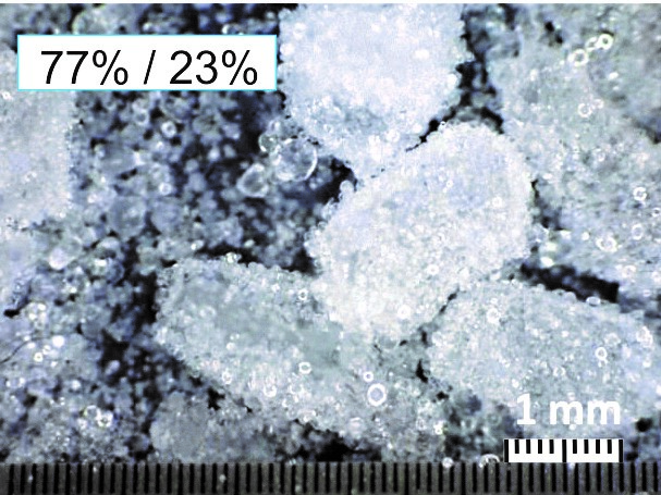 Mixture of water ice particles 77 wt% ~70 µm and 23 wt% ~1060 µm
